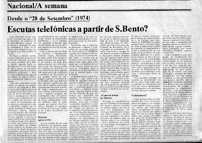 Logo a seguir ao 25 de Abril, O Jornal de 7.11.1975, noticiava que havia escutas telefónicas possivelmente dirigidas a partir de S. Bento. A nova legalidade revolucionária, pelos vistos...
