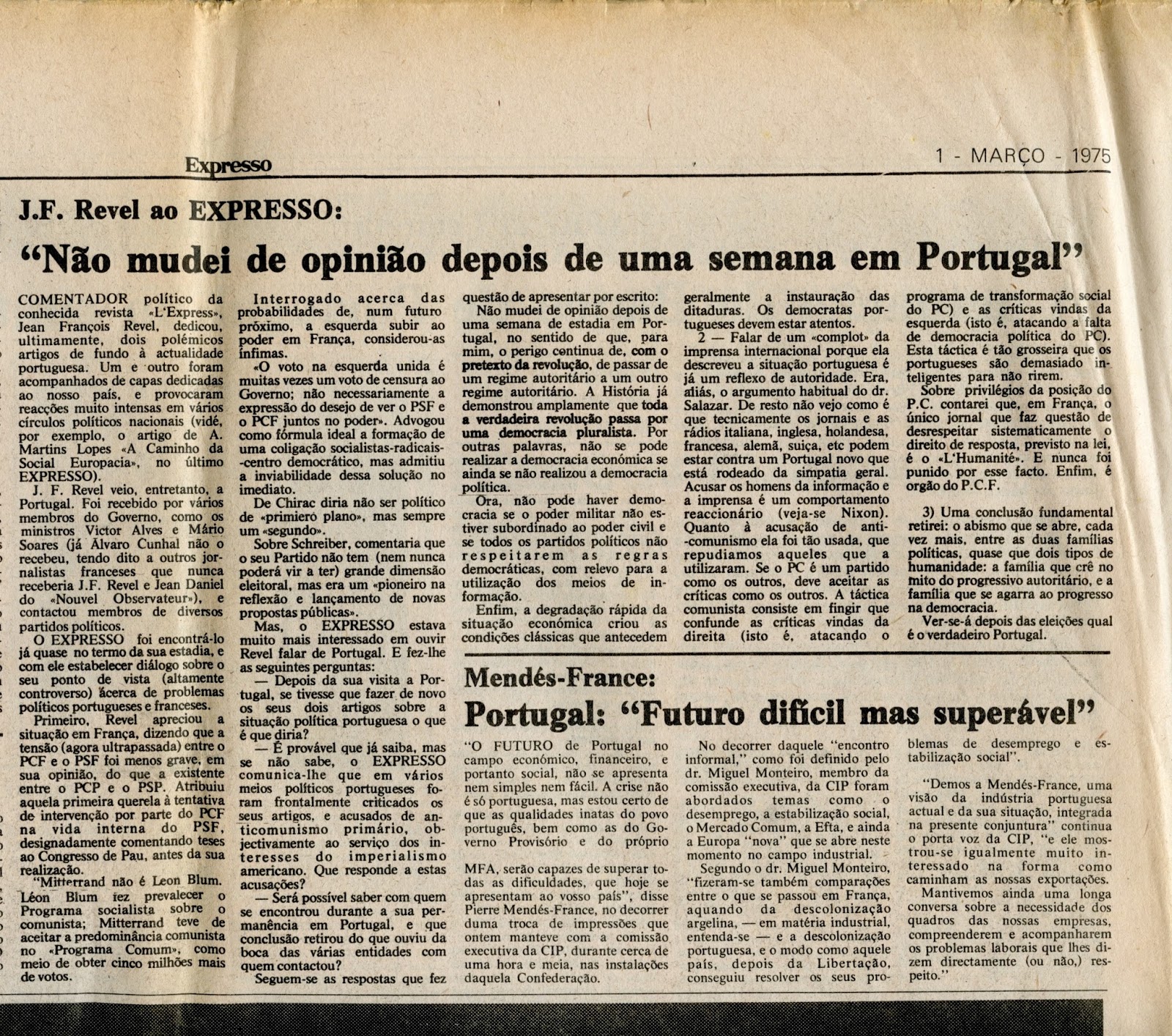 No Expresso o melhor que se fazia, em Março de 1975 era dar voz resumida ao mesmo Revel que esteve por cá.