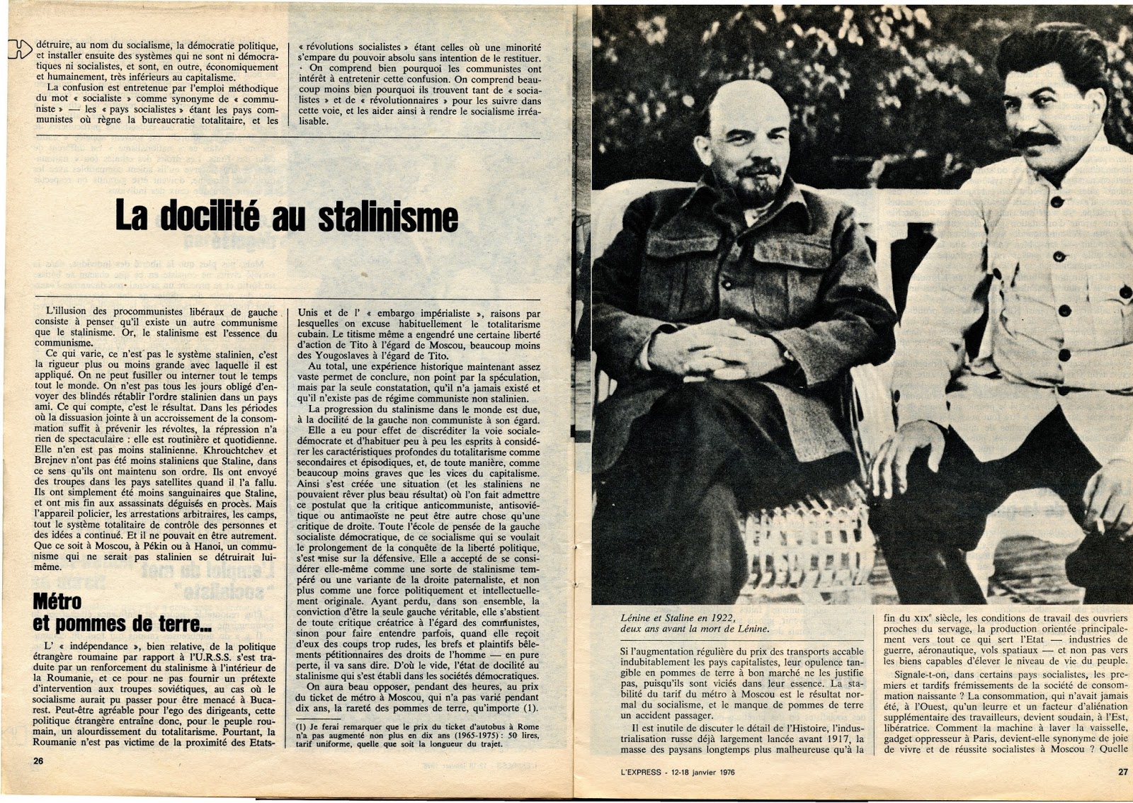 Em 1976 a revista francesa L´Express publicou um artigo extenso com transcrição de passagens de um livro de Jean-François Revel acerca da ameaça totalitária comunista. E vendia 1 milhão de exemplares. Lembro-me de ver nos quiosques a revista e comprei este exemplar.
