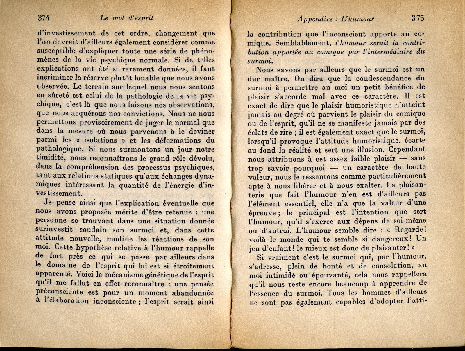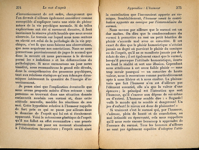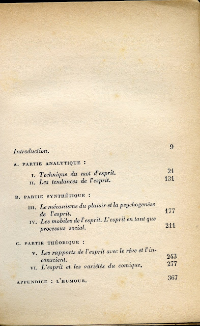 Então fui refolhear uma obra antiga que tenho há precisamente 40 anos: Le mot d´esprit et ses rapports avec l´inconscient, de 1905 e da autoria de um reputado judeu de Viena que se dedicou ao estudo da psicanálise. A edição original da Gallimard ( aqui em edição de bolso nrf) é de 1930 e foi revista pelo autor, então ainda vivo.