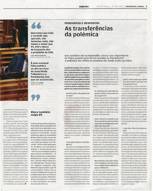 O jornalista do Público Pedro Crisóstomo andava de olho em cima do Fisco e do governo na sua tarefa de sindicar o poder. De quem? Veremos. Em Abril de 2016 tinha dado conta aos leitores interessados do dinheiro que saíra para offshores no período 2011 e 2014. Ninguém ligou nessa altura na única perspectiva que agora ligam ( incluindo o ignorante destas matérias Pacheco Pereira, no Quadratura de ontem, onde fez tristes figuras sobre o assunto, apesar de esclarecido por Lobo Xavier) e que é a de vituperar os offshores como coisa diabólica do nosso capitalismo incipiente e pobre e de caminho o governo do Passos, único objectivo que interessa a fim de salvar a face desta Geringonça comprometida, no Governo, em trafulhices com sms na CGD.