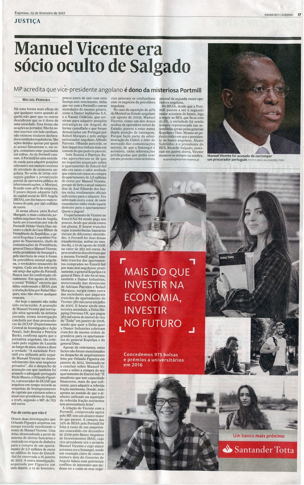 O Jornal de Negócios, dirigido por Raul Vaz, o tal que faz tandem na Antena 1 com Ana Sá Lopes e o atrelado Delgado, a propósito do assunto fez jornalismo. Daquele que às vezes sabem fazer e que não se confunde com o do Público actual, cujo director, a continuar assim, mais dia menos dia acaba a dirigir o Expresso.
