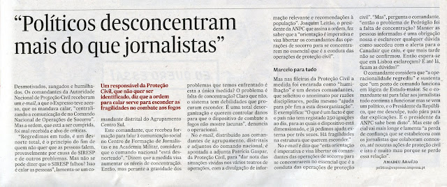 Uma delas disse o fundamental: Por que razão o comando operacional dos bombeiros falhou tanto e por que não foram disponibilizados os meios, se houve avisos com 48 horas de antecedência sobre o agravamento das condições climatéricas? Em duas horas, o que era fumo transformou-se numa catástrofe".