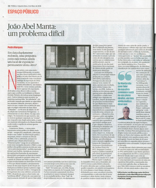 João Pedro Marques, autor do livro dedicado a João Abel Manta, lançado pelo Público em 2016, na colecção de designers portugueses, escreveu este artigo no Público de hoje sobre o mesmo João Abel Manta.