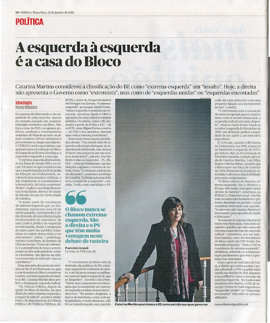 Até o velho bispo da igreja trotskista, Louçã, filho de almirante do antigo regime, considera um dislate tal classificação: "o bloco nunca se chamou extrema-esquerda".