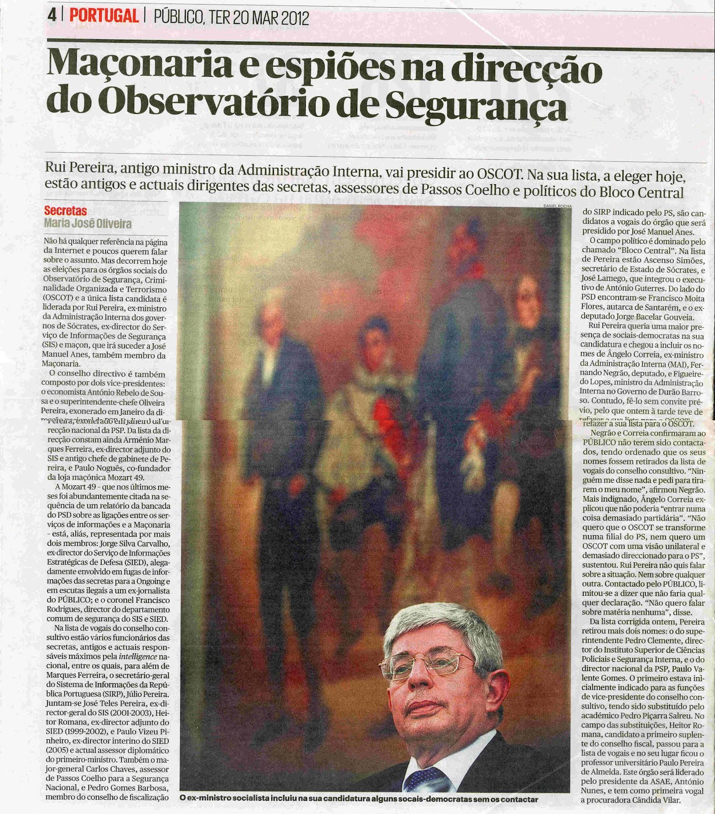 Será isto um escândalo? Nem tanto se não lhe deram importância. Porém, o OSCOT assume "preocupações". Evidentemente uma delas, porventura a mais importante é a posição dos seus peões de brega nas instituições do Estado que se ligam à Segurança da Nação. O OSCOT é uma antecâmara sem qualquer legitimidade democrática para intervir politicamente, para além do associativismo corrente e que ostenta pessoas, nomes e funções para o Estado e a Segurança do dito, um dos sectores que confessadamente mais os preocupam.