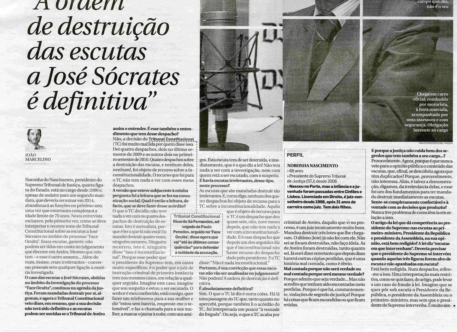 O presidente do STJ Noronha Nascimento dá uma entrevista auto-justificativa ao Diário de Notícias/ TSF no dia de hoje, das mentiras.