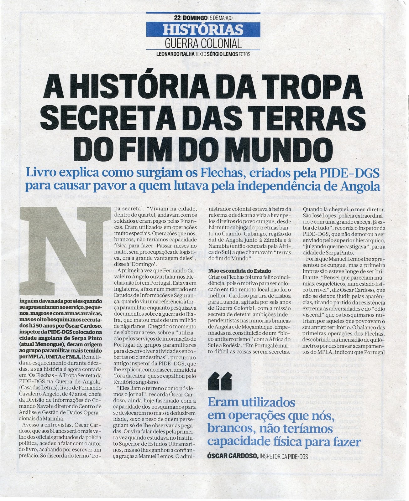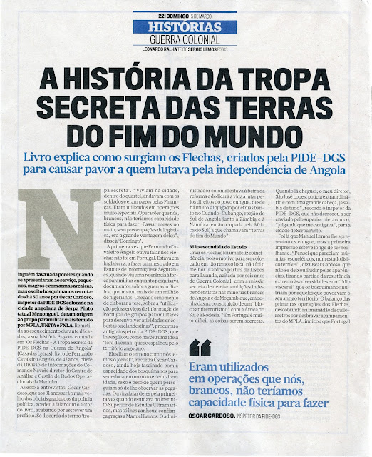 A propósito destes assuntos foi agora lançado um livro que trata de um aspecto particular da guerra no Ultramar português: Os Flechas, de Fernando Cavaleiro Ângelo, prefaciado por Óscar Cardoso, antigo inspector da Pide/Dgs e herói nacional dessa guerra agora só lembrada pela perspectiva dos que então nos combatiam, como era o caso dos socialistas avant la lette e dos comunistas de sempre.